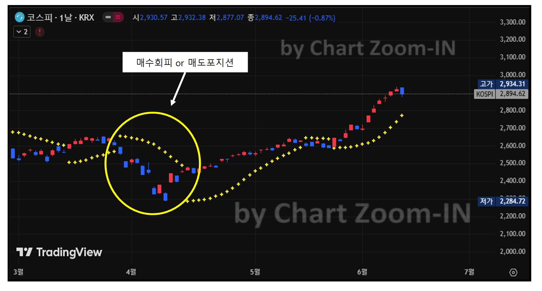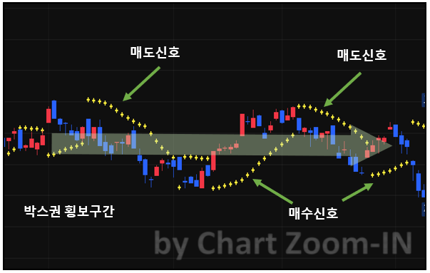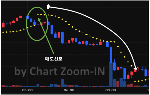 - 추세 반전 신호: 점의 위치가 주가 위아래로 뒤집히는 순간은 추세가 전환될 가능성이 높다는 강력한 신호입니다.