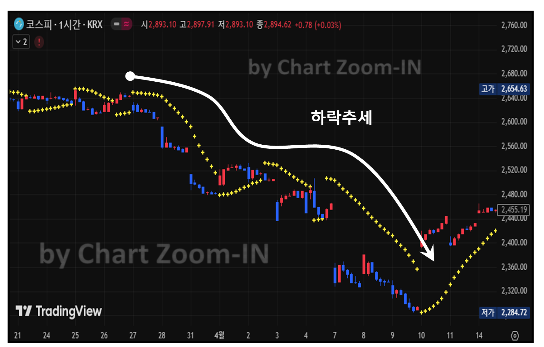 - 직관적인 추세 확인: 점의 위치만으로 현재 추세가 상승인지 하락인지 쉽게 알 수 있습니다.