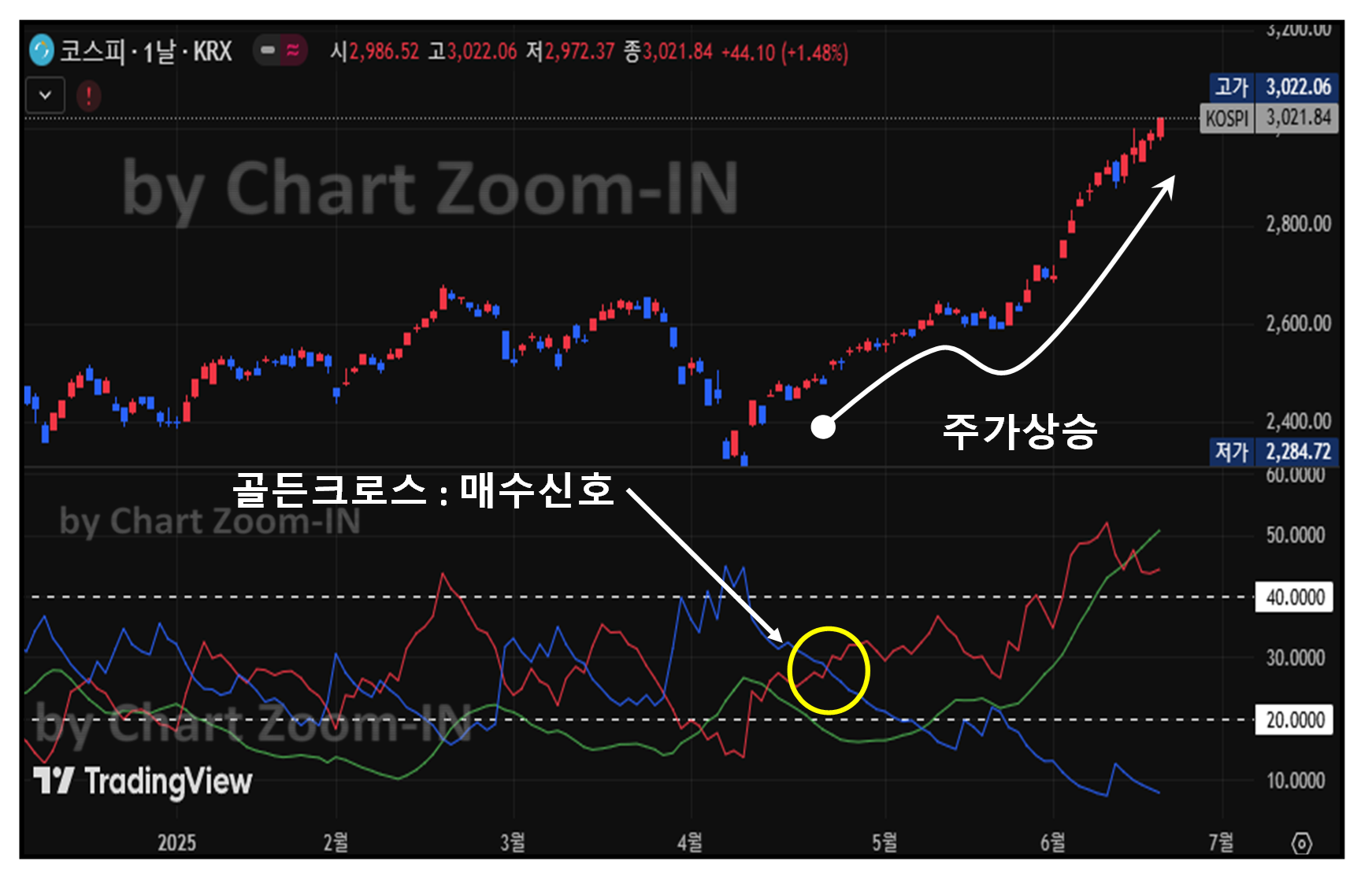 - +DI 선이 -DI 선을 상향 돌파 (골든 크로스): 매수 신호로 해석합니다. 상승 추세로의 전환 가능성을 암시합니다.